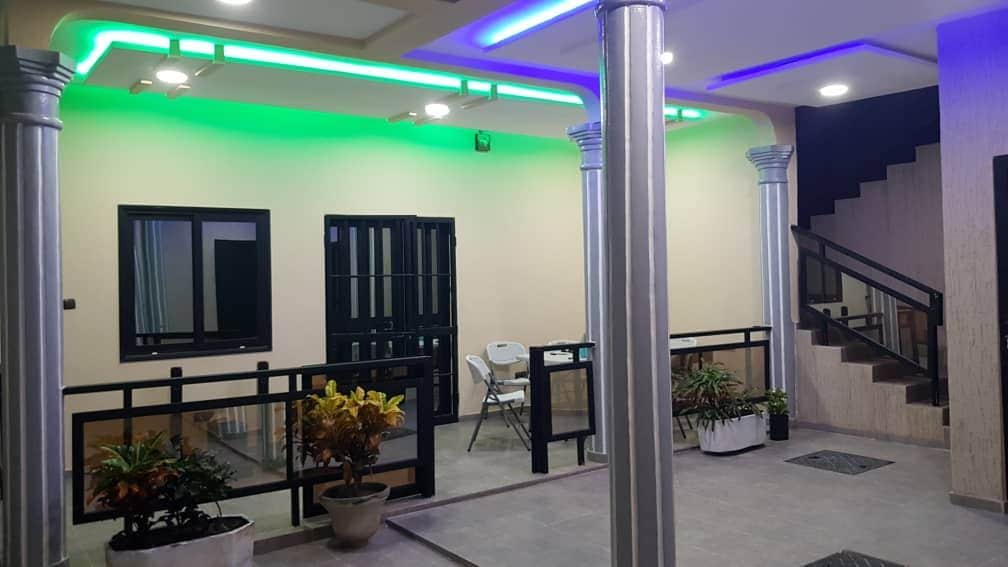 Cette maison spacieuse de 2 étages située dans le quartier de Nyékonakpoé, dispose de 3 chambres 🛏️ avec chacune une salle de bain privative (douche à l'italienne 🚿 et WC 🚽). 2 WC visiteurs sont également disponibles. La grande terrasse sur le toit est équipée d'un jacuzzi 🛁, d’un bar 🍸, d’un salon en plein air 🛋️, et d'une cuisine BBQ 🍖. Cuisine équipée au RDC. Le tarif n'inclut pas la consommation d’électricité ⚡ Vous devrez acheter un crédit d’électricité à votre arrivée.