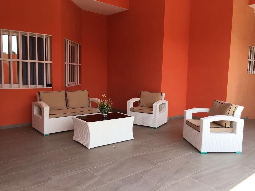 This beautiful villa was built 3years ago in a quiet residential area in the city of Baguida. Very clean, new , with 4bedrooms and 4 full baths. Large living room with flat screen tv, dinning room and a large American kitchen. You can relax on the patio overlooking the lush green garden or under the gazebo for some afternoon breeze. Perfect for families on vacation. Please note that the electricity is 200fcfa/kWh and payable at checkout. There’s a house guard on the property 24/7.