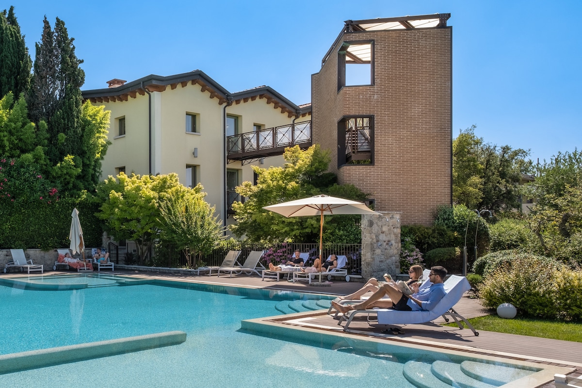 Exclusive Junior Suite in a wellness boutique hotel just steps from Lake Garda. Its highlight? A private whirlpool tub on the terrace for pure relaxation under the open sky. Elegant design, a cozy king-size bed, modern bathroom with spacious shower, and a tea and coffee corner. An intimate retreat where comfort, well-being, and romance come together to offer you an unforgettable stay.