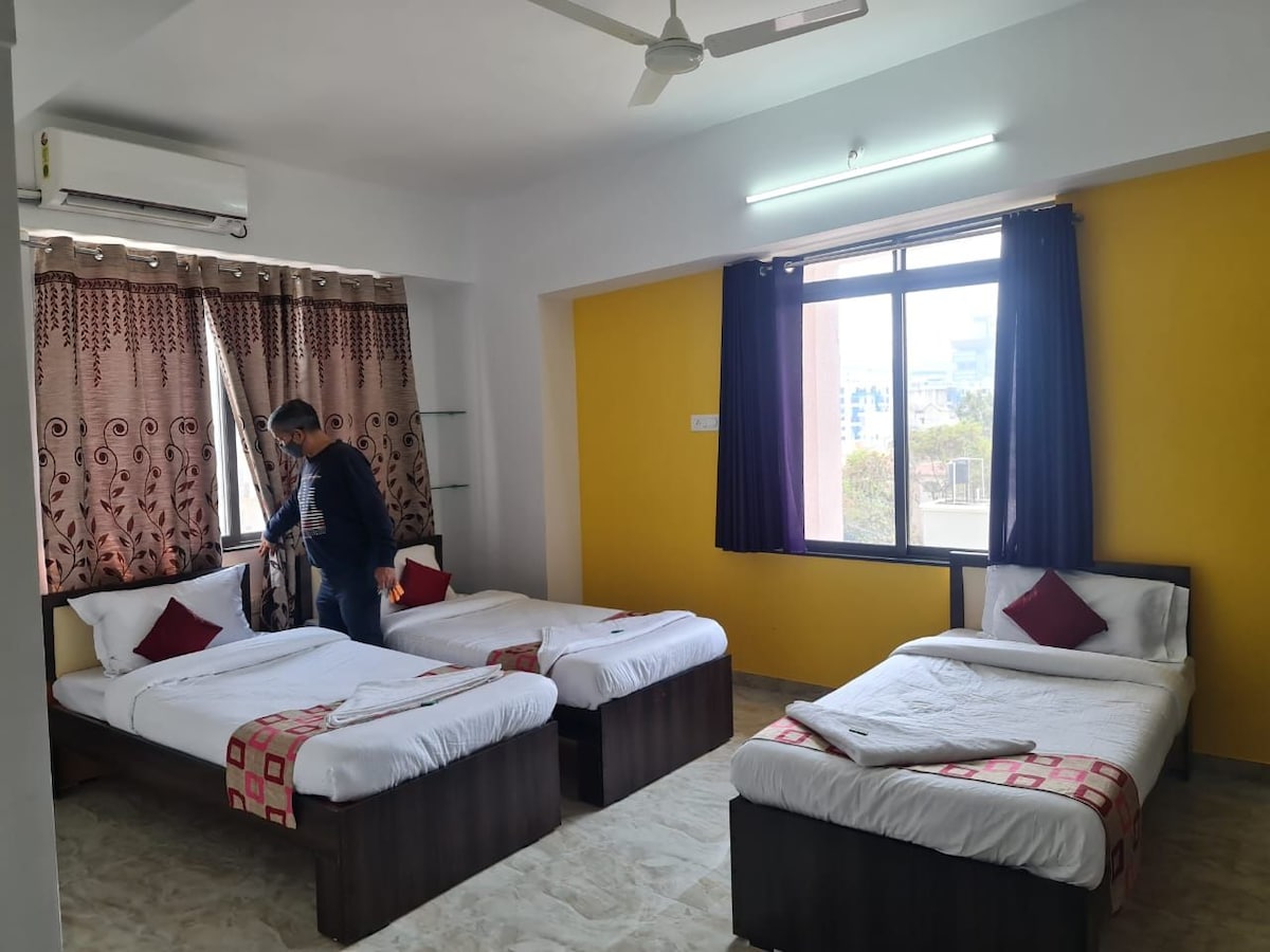 A comfortable AC room in a four-story building in the centre of the West Pune IT Sector . It is conveniently located near the Mum-Beng Highway and is situated in a quiet residential zone.amenities like a cosy double bed, A/C, a smart TV, and a private bathroom. Enjoy a complementary breakfast to start the day, then work productively at the assigned workspace. Additionally, use delivery apps and local stores for all of your necessities. Your stay will be hassle-free and 24/7 caretaker service.