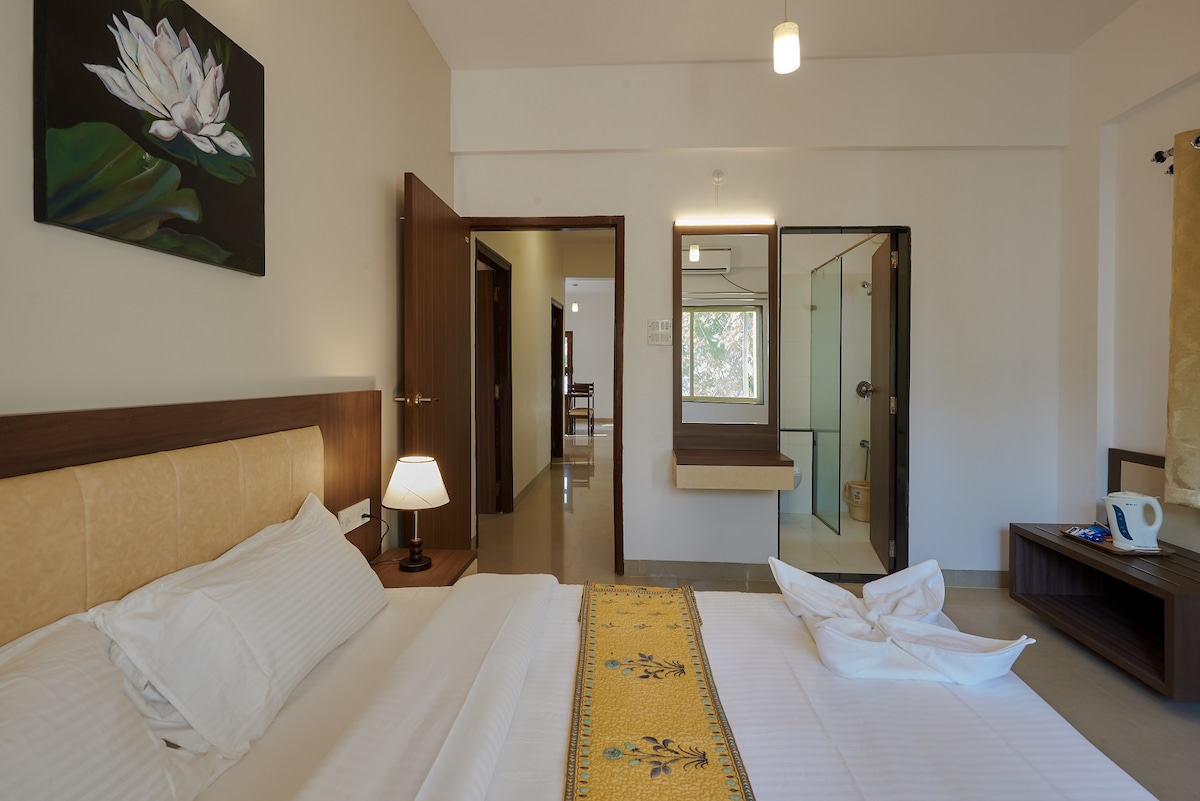 Deluxe-suite with a common pool is located near the famous temple called Ekvira and equidistant from Lonavala and Khandala. Conveniences available in the rooms include Tea-coffee maker, air-conditioner, attached bathroom, hot water supply.