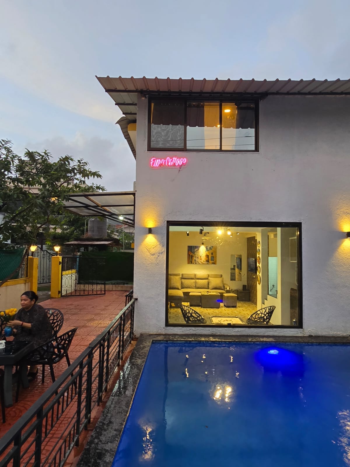 Welcome to Emerald Nest, Lonavala! Experience luxury and serenity at this stunning 4BHK villa, perfect for family getaways and group retreats. Featuring a private heated pool (additional cost), outdoor movie theatre, elegant interiors, and lush outdoor spaces, Emerald Nest offers the perfect blend of comfort and style. Enjoy modern amenities all while being close to Lonavala’s top attractions. Book your stay for an unforgettable escape!