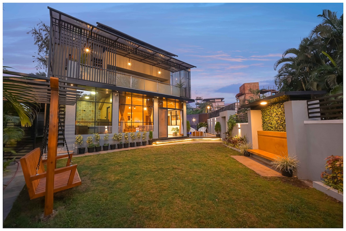 Experience comfort and style in this modern 5BHK villa in Lonavala, perfect for families and groups. The villa features a private swimming pool, sunset-view terrace, gazebo, and a spacious lawn ideal for relaxing and spending quality time together. Designed with a warm and cozy ambiance, the interiors are spacious and inviting. Centrally located, the villa offers easy access to all major attractions, markets, and conveniences, ensuring a comfortable and hassle-free stay.