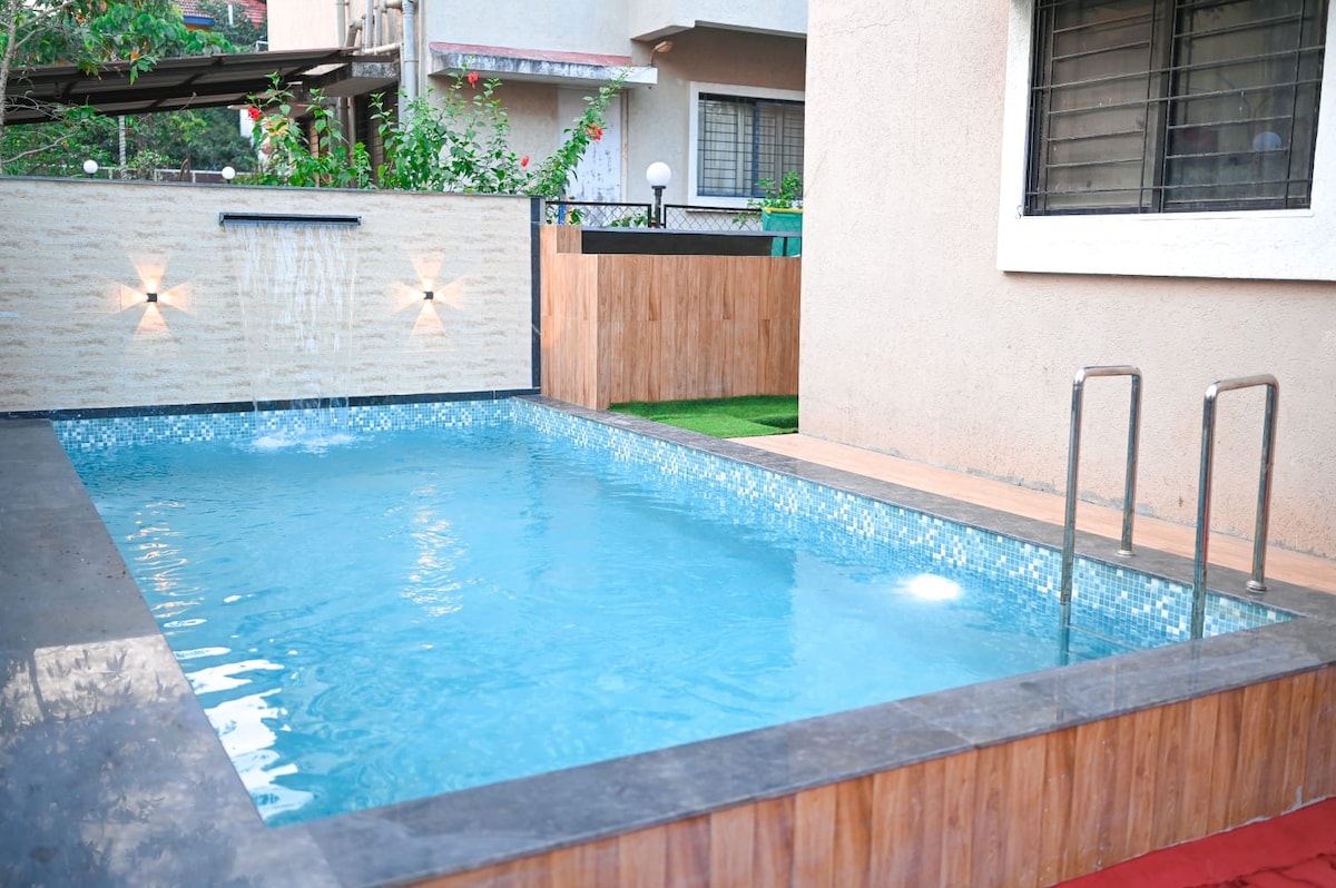 ●MTDC Approved 3bhk KshiyOO Villa ●INDOOR private Swimming pool property ● Big pool ( 29 feet x 10 feet + hight 5feet - water level 4.5 feet) ●Adults Swimming pool -for kids pls carry your own tube ●Night after 11pm Swimming pool not allowed ●Food-Cook available -- Food charges Extra./ For self cooking kitchen setup available Gas charges Rs.300/ per night. ●Indoor games a - Carrom, Chess, badminton,cricket- bat+ boll + Card