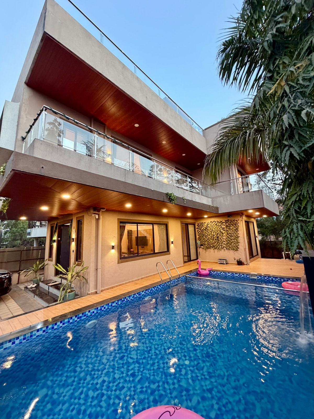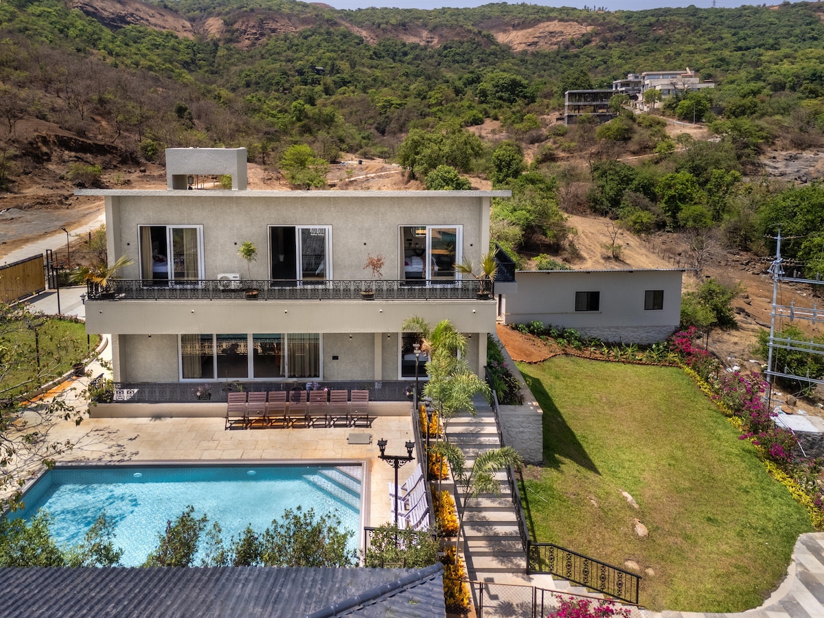 This fully-serviced stunning 3 BHK Villa in Lonavala features a private swimming pool, a spacious terrace, and breathtaking mountain views! Located just 5 minutes from the market (famous Coopers Fudge & Chikkis shop), it offers the perfect blend of privacy and convenience. Enjoy luxurious interiors, a serene atmosphere, and easy access to local attractions. Ideal for a family getaway or group retreat, this villa amidst nature's tranquility promises a special stay in the heart of Lonavala.