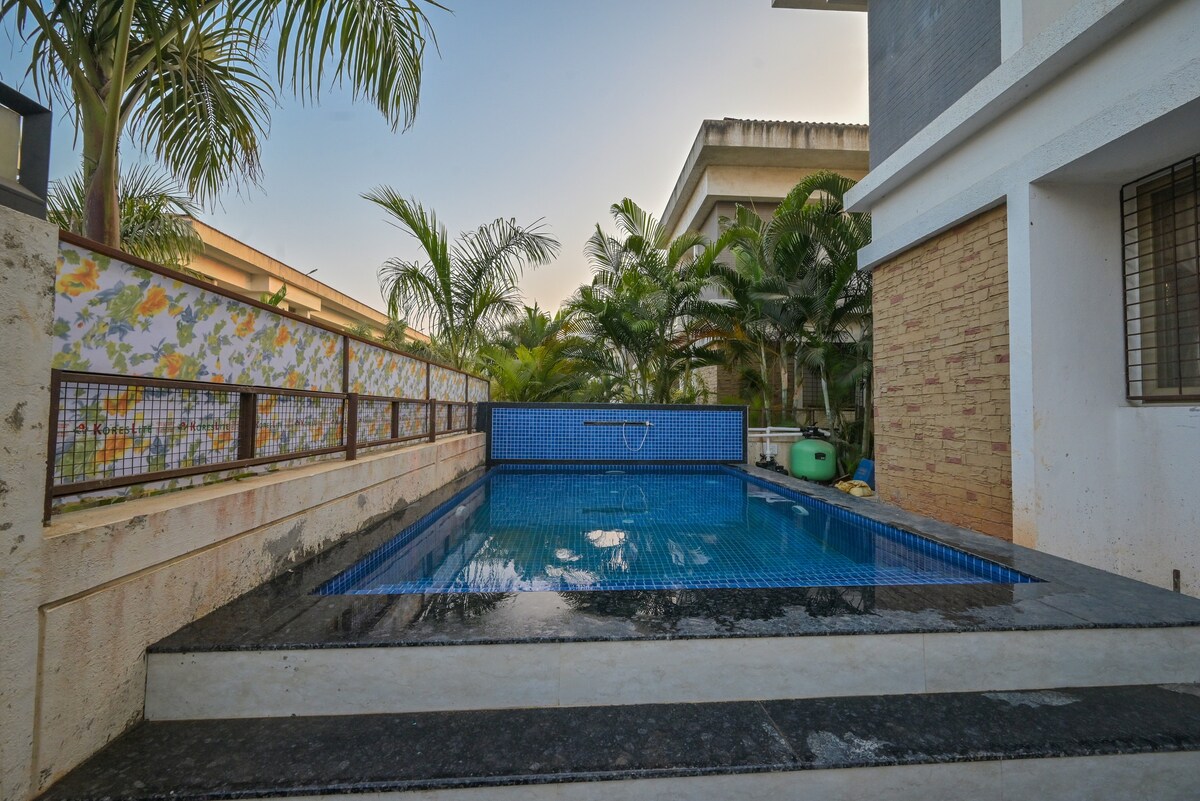 A beautiful 3 BHK newly fully furnished villa, located near hills, in a secure gated community, this luxurious villa is the perfect place for a family vacation, With 3 air-conditioned bedrooms, fully equipped kitchen, private pool and balconies. Drip Coffee, Tea and Green Tea Maker in all bedrooms.