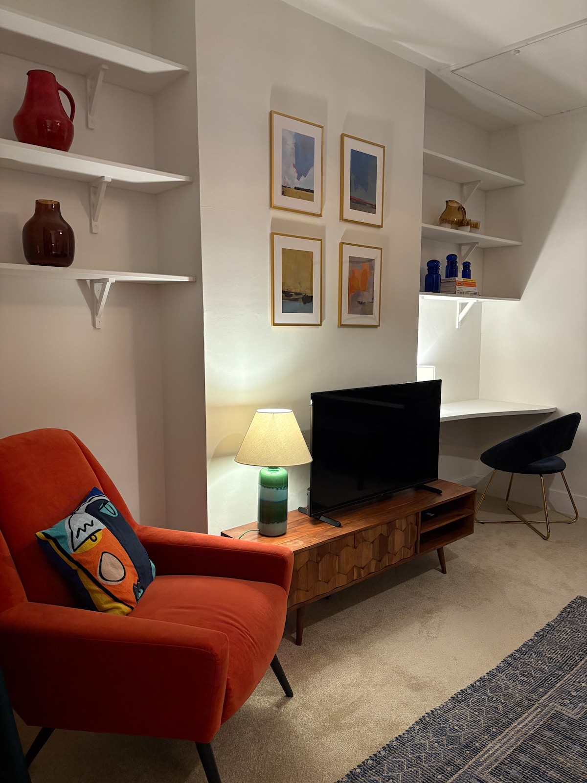 Located on a peaceful, traffic-free street, this apartment is just a 5-minute walk from the nearest underground station, offering easy access to central London. You'll also be within walking distance of iconic spots like Primrose Hill, Camden, and Belsize Park. Inside, the apartment has a fully equipped kitchen with modern appliances, including a coffee machine. The bedroom offers garden views, and with soundproofed ceilings, you'll be sure to enjoy an undisturbed night's sleep.