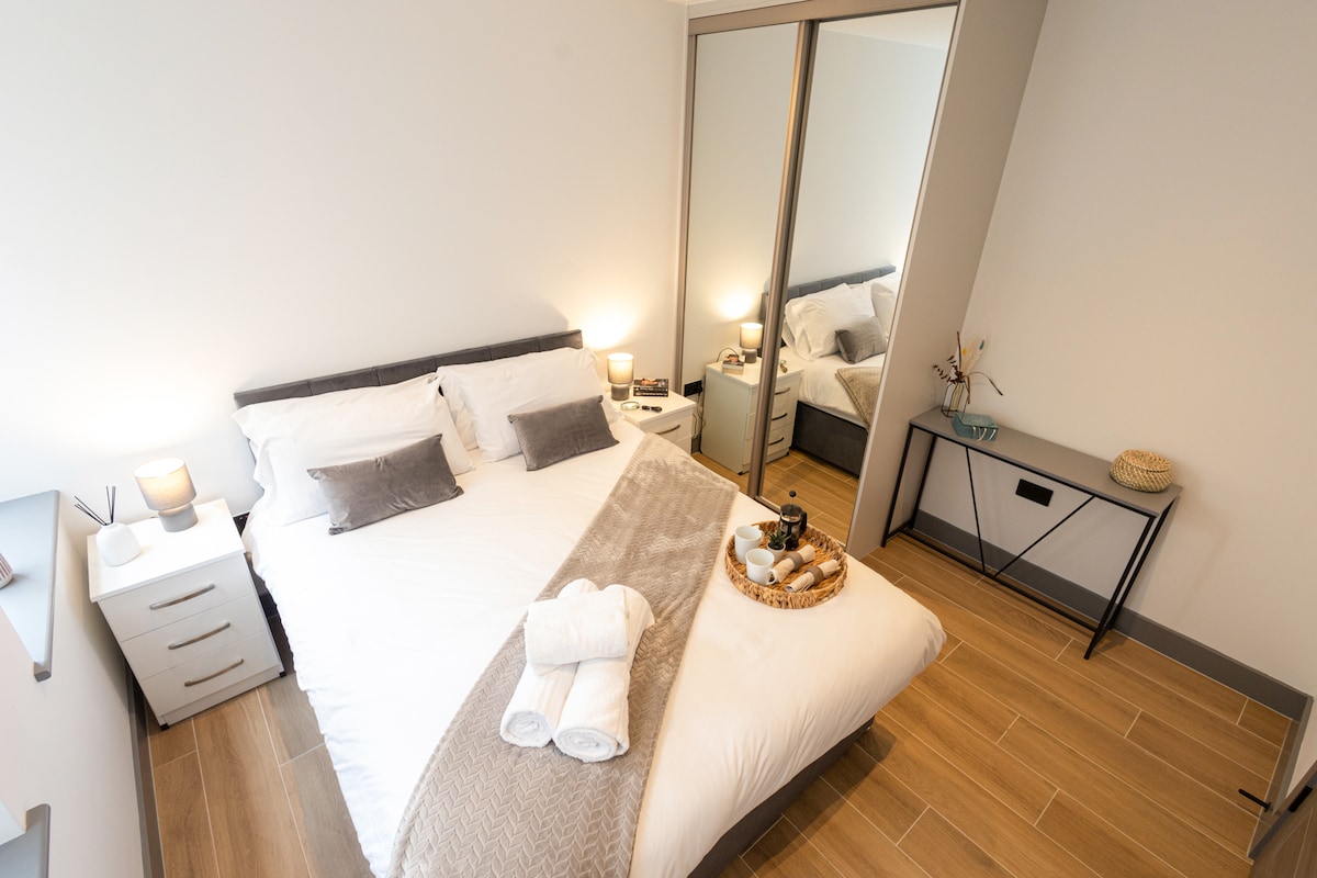 Whether you're in town for a concert, football match or just to explore the city this apartment in a secure, modern building located just 5min walk to Wembley Stadium & OVO Arena. Boxpark & London Designer Outlet nearby. Surrounded by Restaurants, Cafés, Parks, and Grocery stores. Enjoy stylish open-plan living area, private balcony, fully equipped kitchen with premium appliances and a modern bathroom. Free WiFi and Smart TV's for your entertainment. Stay active with access to an on-site gym.