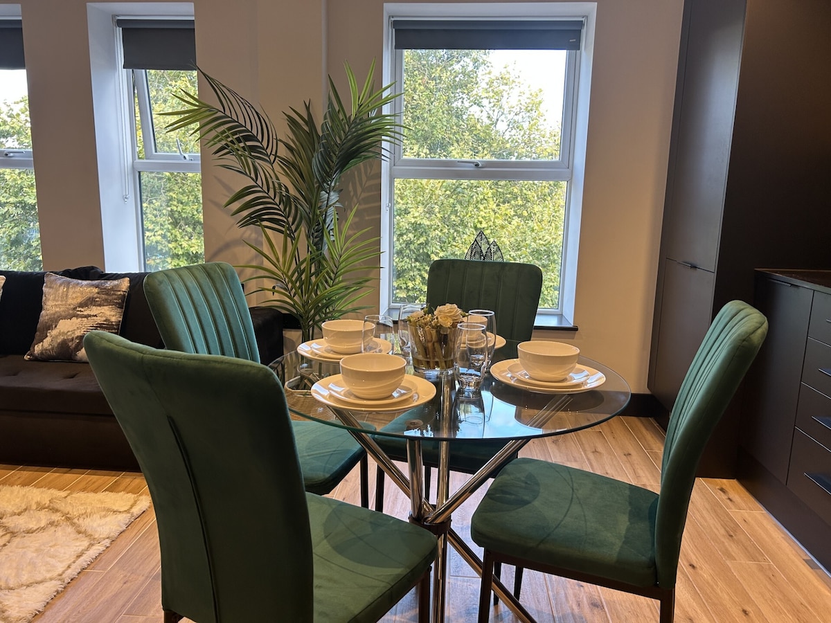 Overlooking the fields, this luxury top floor space invites you to unwind. Ultra-clean, peaceful and beautifully styled. Equipped with everything you need and more. Brew fresh bean-to-cup coffee with the Ninja Luxe Coffee Machine. Stream your favourite shows on the Smart TVs, play board games as a group or work where the view inspires you. Whatever the purpose of your stay, working or relaxing - this is the place to be! London is close by, but feels like a world away. Always a place to park too!