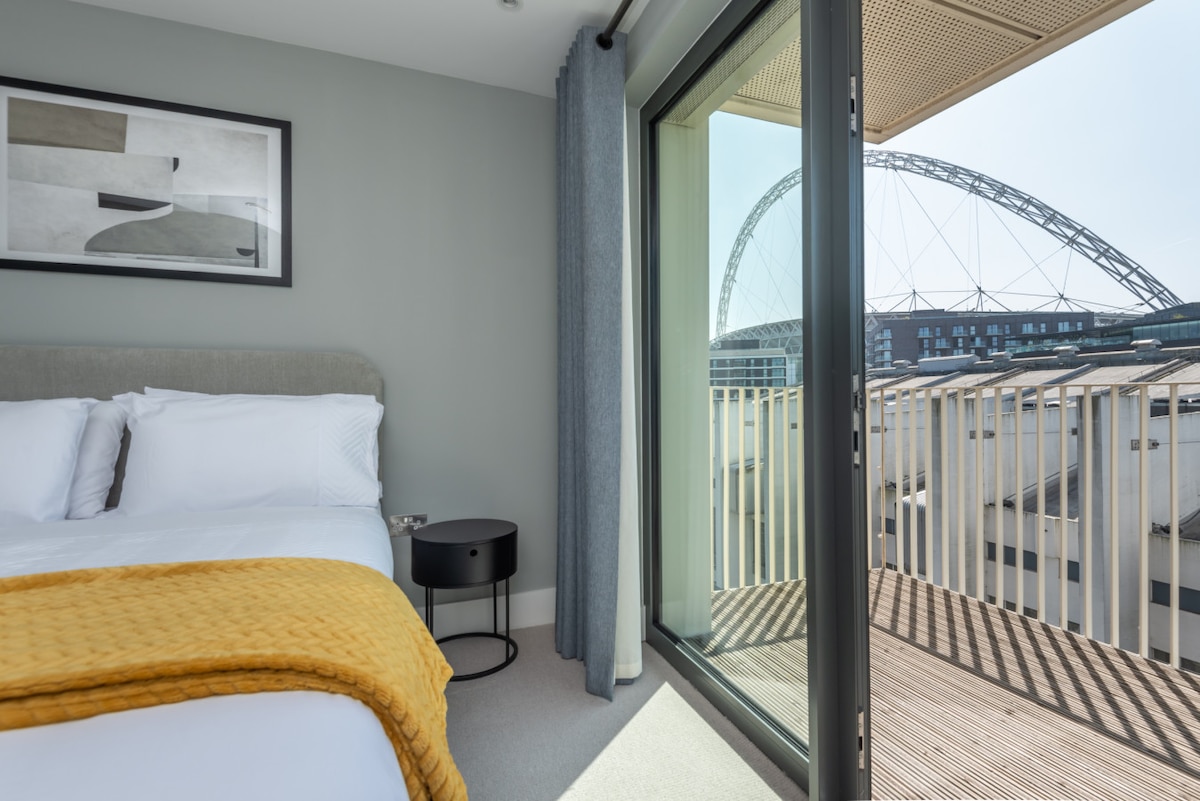 Whether you're in town for a concert, football match or just to explore the city this apartment in a secure, modern building located just 5min walk to Wembley Stadium & OVO Arena. Boxpark & London Designer Outlet nearby. Surrounded by Restaurants, Cafés, Parks, and Grocery stores. Enjoy stylish open-plan living area, private balcony, fully equipped kitchen with premium appliances and a modern bathroom. Free WiFi and Smart TV's for your entertainment. Stay active with access to an on-site gym.