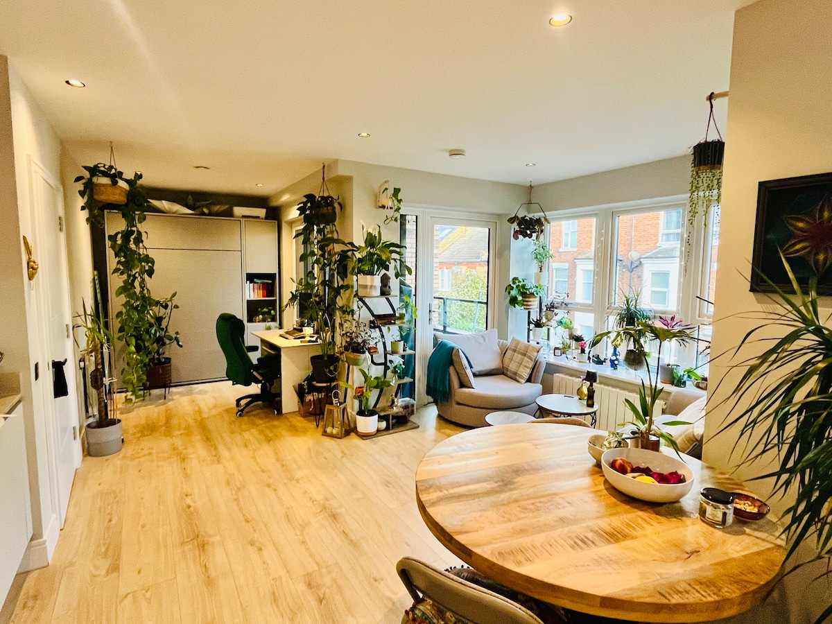 Quietly nestled just outside central London, this newly refurbished garden flat is stylishly furnished with eclectic accents collected from across the globe. Full of life and charm, the modern living area and tranquil garden offers a perfect respite from the London bustle. Airy and bright, it's lovely for long dinners with friends, chilling out in front of the television or a base for exploring London. Please note this is my home when I'm not Airbnbing - it's not a permanent rental.