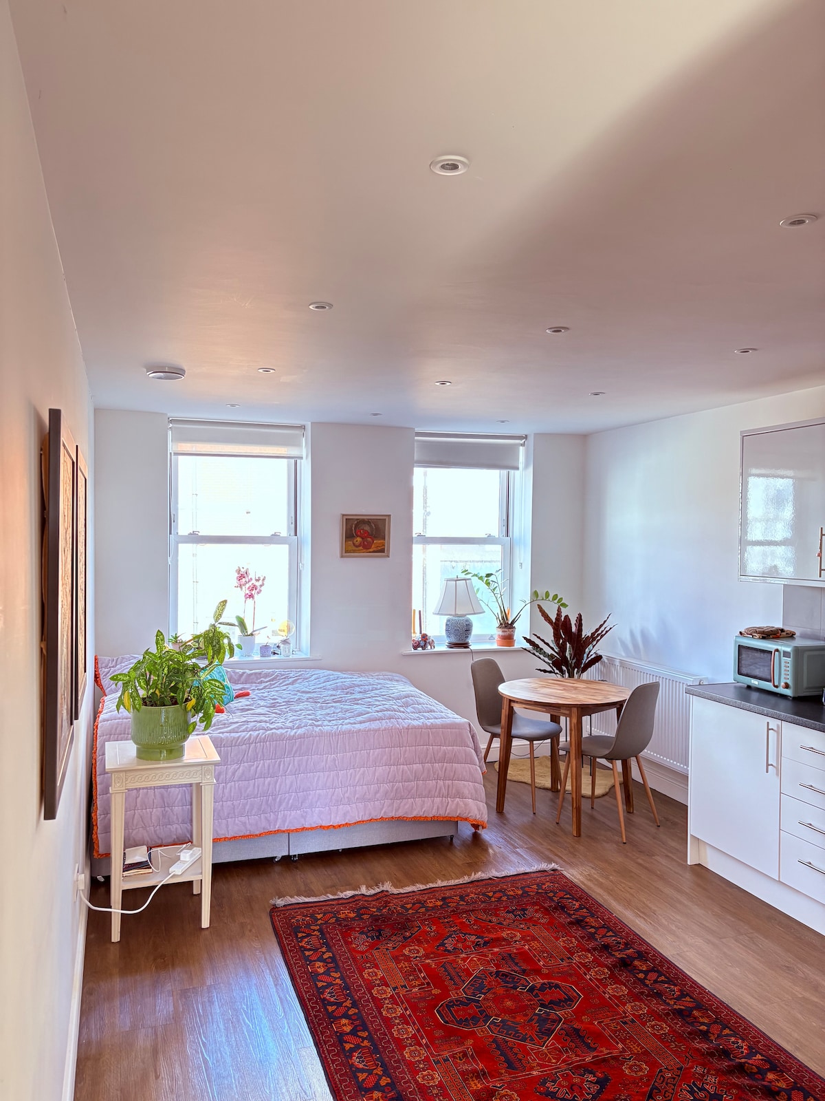 A delightful 2nd floor walk-up apartment with wooden floors throughout. The flat is fully furnished with open plan fully equipped kitchen. Flat ready with bed linens and towels. Apartment comes with 24 hour emergency service and maintenance team. It has fast fibre speed wifi. Living room with dining area has a pull out sofa bed for a 3rd adult to stay or 2 children. It is has a bedroom with large 5ft wide (king size bed) and bathroom with large walk-in shower.