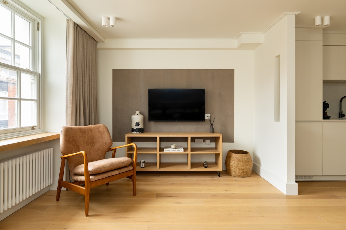 Large 1 bedroom with open plan living. NaturalMat (Same as Six Senses hotels) luxury European King Sized bed (160cm x 200cm). Bathroom with bath and shower and eco-toiletries provided. Fully Equipped Kitchen – Grind coffee machine, Joseph Joseph kitchenware, 4 ring gas hob, dishwasher, full size fridge freezer Smart TV & Comfort Cooling – For year-round comfort and entertainment. Weekday concierge and lift to all floors. We also happen to be London's No.1 sustainable operator!