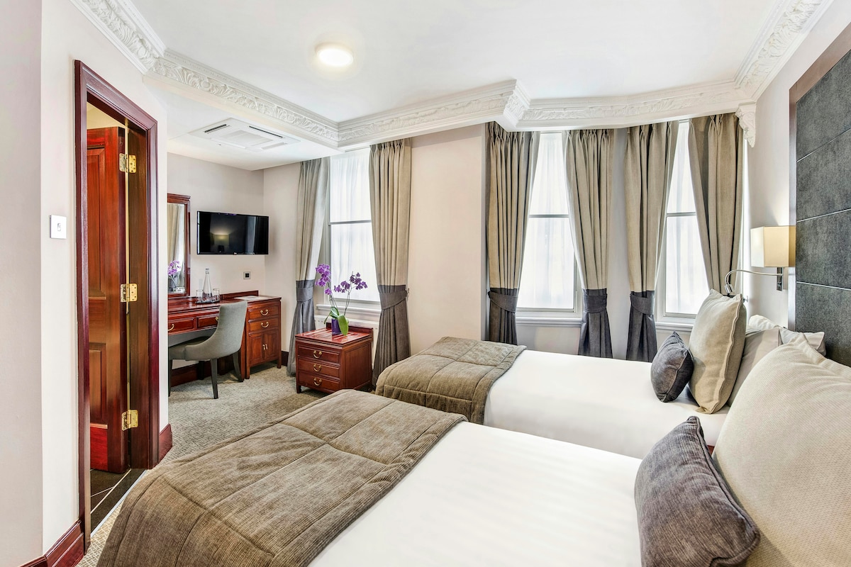 Second Floor large en suite studio, fully loaded with state of the art modern facilities including automatic online access entry codes for secure accessibility. Suites are situated in a newly refurbished large Georgian Grade II Listed building, Located in the heart of Notting Hill. This room is suitable from one to up to a maximum of three guests, with 2 single beds, with one extra single bed available.