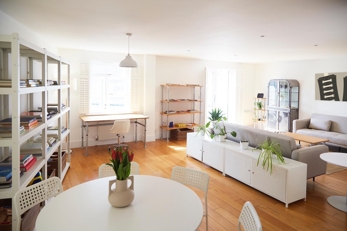 Set in a beautiful artists complex 15 mins walk from King’s Cross, 10 mins from Camden Market and yet quiet and peaceful, this beautiful flat is perfect for a small group or family to relax in after a hard day exploring London. This unusually large, quiet and friendly space is within London zone 1 in Camden Town but feels like a calm oasis. Choose space, light, quality time and a decent nights sleep. Come back from the culture and activities of the day to your haven and relax.