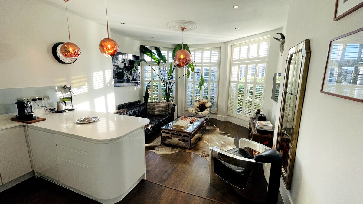 This beautiful 1 bed apartment is set within a grand period building with stunning high ceilings throughout. The reception room boasts a Sonos sound system & floor-to-ceiling windows opening onto a private balcony. The kitchen is fitted with integrated appliances, luxury cookware & dining area next to a window seat with afternoon sun. The master bedroom features a walk-in wardrobe, en-suite bathroom & faces west. High speed wifi (145Mbps), desk, and smart TV included.