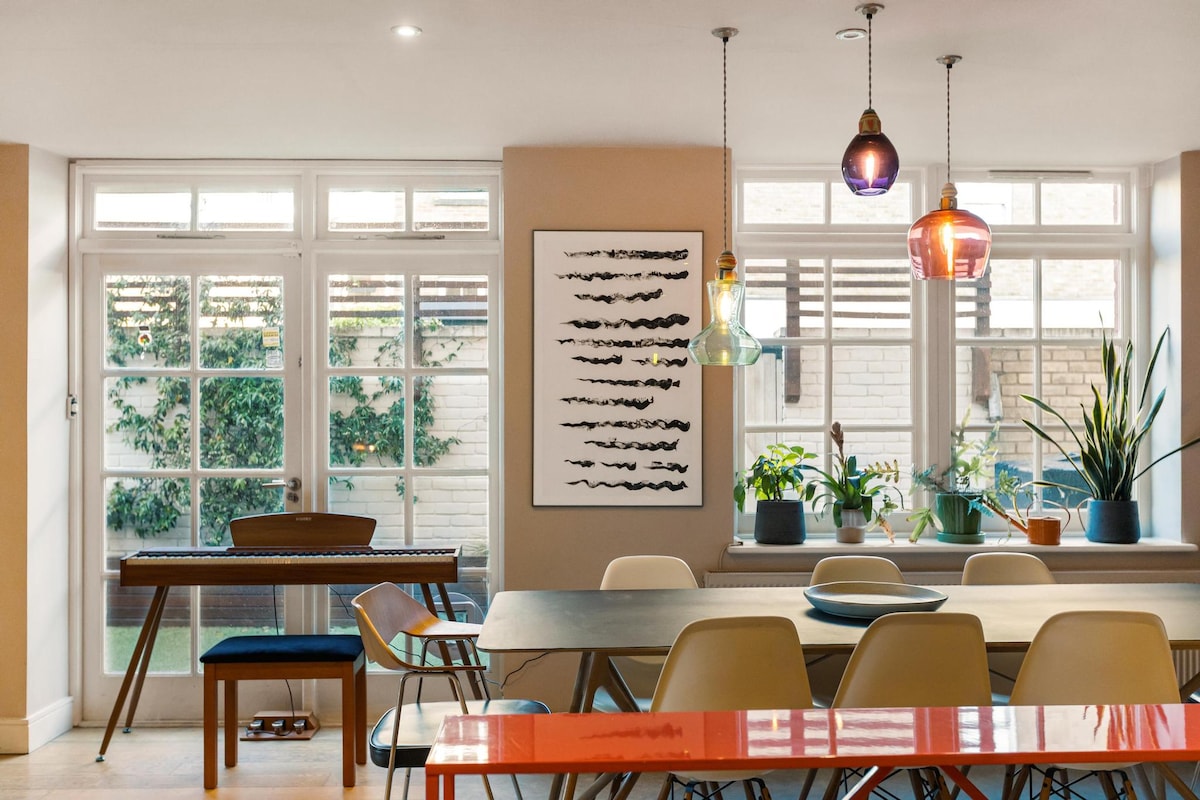 Discover our beautiful family home tucked away on a leafy, quiet road in the heart of vibrant Dalston. I’ve lovingly renovated the house and garden to create a relaxed, comfortable atmosphere blending original period features with an open-plan, contemporary feel. We sleep 5–6 guests, perfect for families or small groups (two king-size, one small double, and a quality single air beds). Enjoy a character-filled stay in London’s most creative neighborhood, with transport links within easy reach.