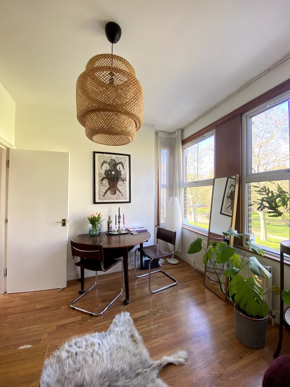 Stay in this oasis in the most sought after location in Hackney - London Fields, just minutes away from Central London! Home to artist, Ali Pretty, this is a beautifully designed large ground floor flat featuring glass doors that open out into a huge decked garden. It has a luxurious bedroom with a super kingsize bed, a spacious open plan reception area, a well equipped kitchen. There’s an amazing bakery and lots of shops close by.