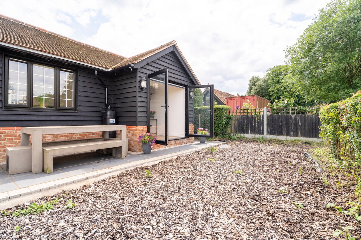 Escape to our modern, self-contained annex bordering Epping Forest. Perfect for hikers & wedding guests or those just looking for a peaceful retreat • Plush King bed, dedicated desk, Sky TV, and high-speed Wi-Fi. • 12m walk to High St; 20m walk to Epping Station (Central Line to London). • Kitchenette: Fridge, microwave, kettle, and toaster. • Private access and on-site parking. Experience woodland peace with easy city access. Book your stay!