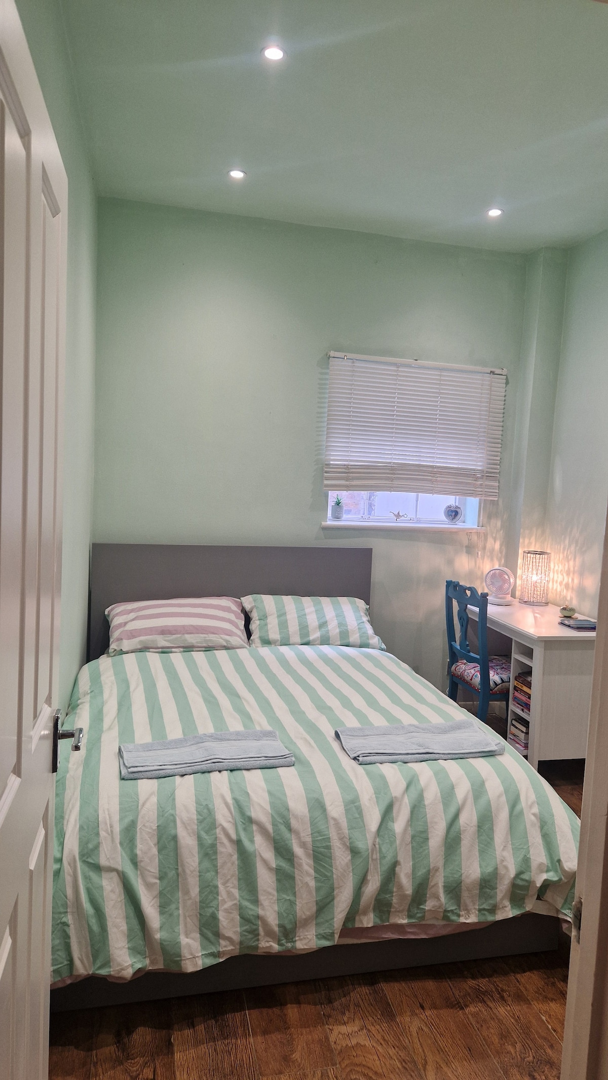 Overlooking the fields, this luxury top floor space invites you to unwind. Ultra-clean, peaceful and beautifully styled. Equipped with everything you need and more. Brew fresh bean-to-cup coffee with the Ninja Luxe Coffee Machine. Stream your favourite shows on the Smart TVs, play board games as a group or work where the view inspires you. Whatever the purpose of your stay, working or relaxing - this is the place to be! London is close by, but feels like a world away. Always a place to park too!