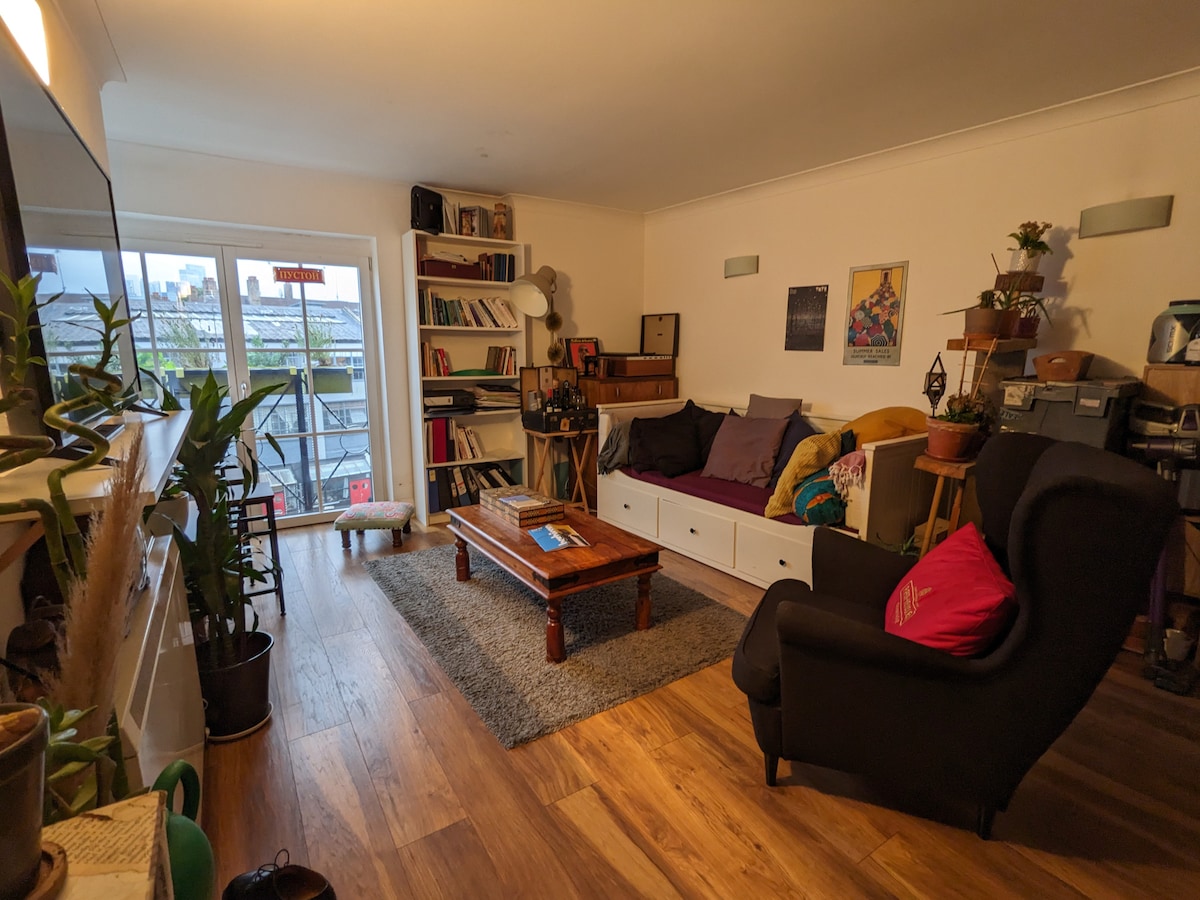 A beautiful, bright, spacious and trendy apartment ideal for couples, singletons or a small family. You will have the whole two bedrooms apartment for you & its own private south facing terrace. You will be surrounded by books, a quirky kitchen with the essentials to cook, and a beautiful bathroom for a relaxing bath. You will be in central Dalston, regularly hailed as 'the coolest place to live in Britain', Dalston is one of the trendy , eclectic, and multicultural jewels of North East London.