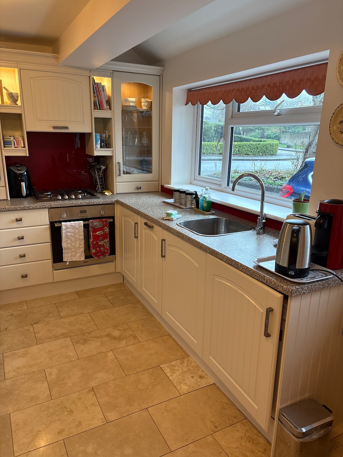 Grace Cottage is an annex on the side of our home. Access is via a locked side gate and then you will need to cross the main house patio area to get to the separate entrance to the flat. It is set up with the bedroom and living area being in one space, with a mezzanine floor where a single mattress is situated. There is a fully kitted kitchen with hob, oven, fridge/freezer, microwave, sink and dishwasher. Shower room with basin, toilet and shower.
