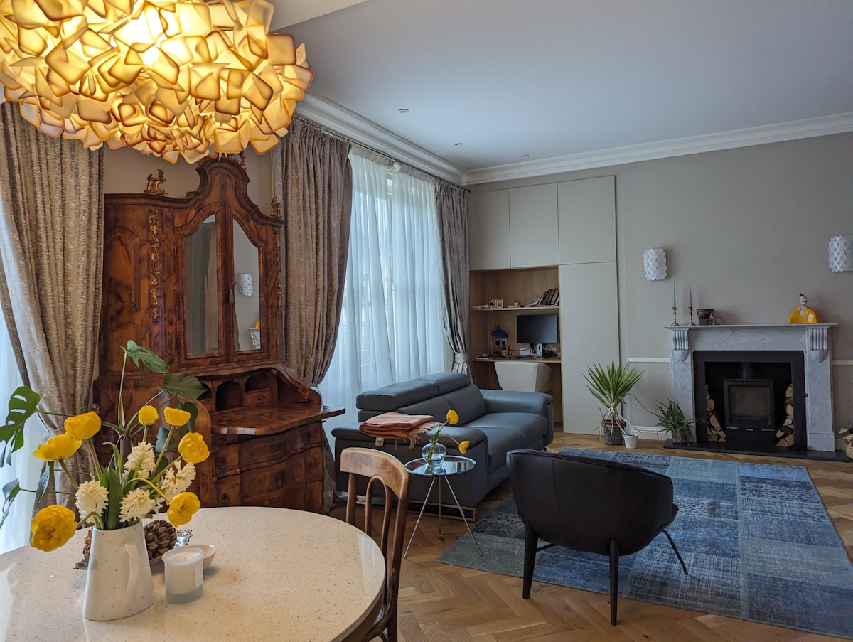 Indulge in a chic experience at this centrally-located spot. Welcome to our exclusive Central London retreat, where sophistication meets convenience in the vibrant heart of the city. Recently renovated, it offers the versatility to transform the same room from a spacious living area with a cozy fireplace to a bedroom with just the touch of a button.