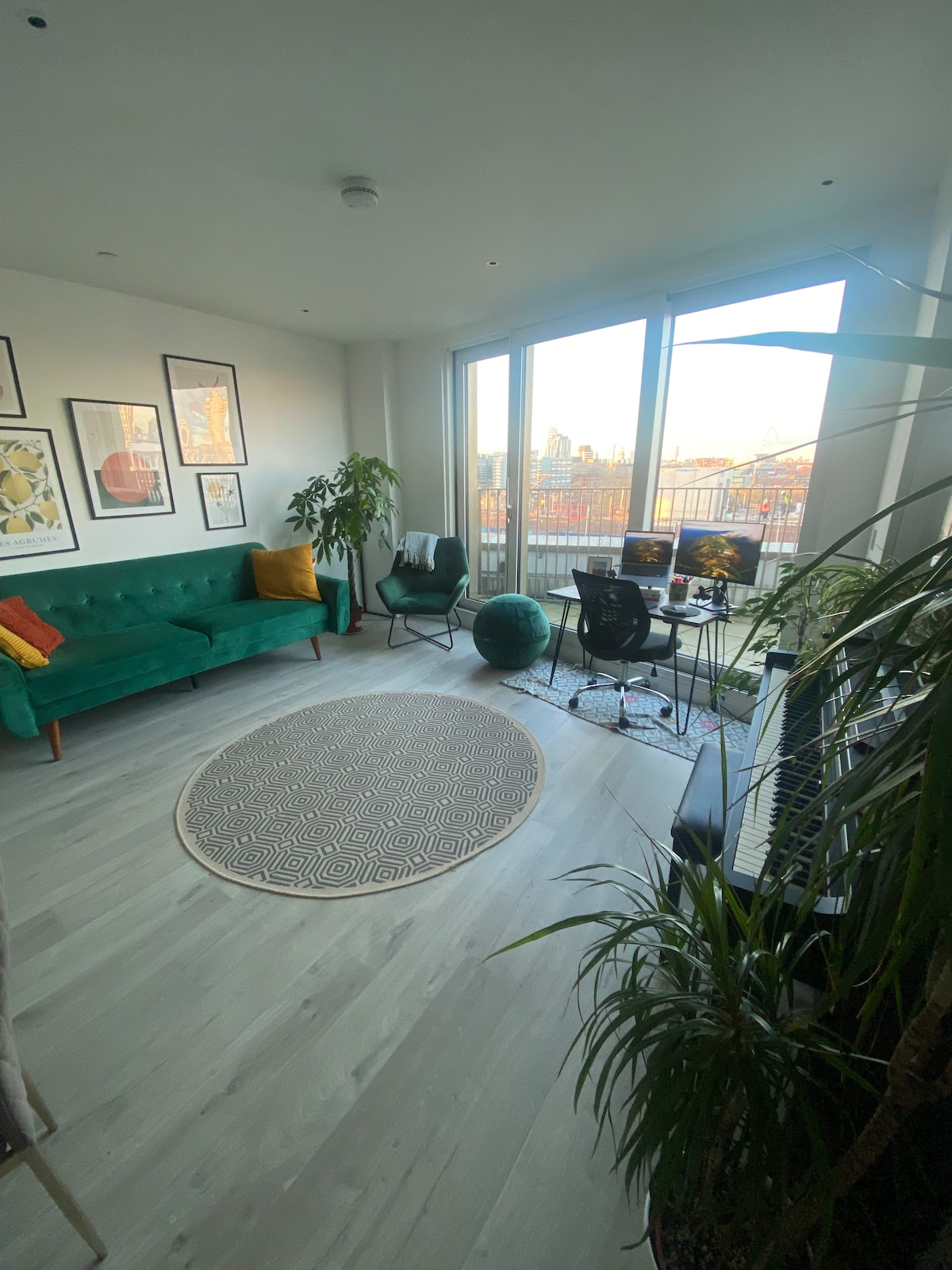 Small self contained Studio room on the ground floor of our contemporary timber-framed house. This unique street facing space has a large rear facing internal window looking into a shared work studio (there is a curtain). We are Located near buzzing cafes, galleries, parks, and landmarks, it’s well-connected to central London via nearby transport. A welcoming family live-workspace offering a comfortable and inspiring base to explore the city.