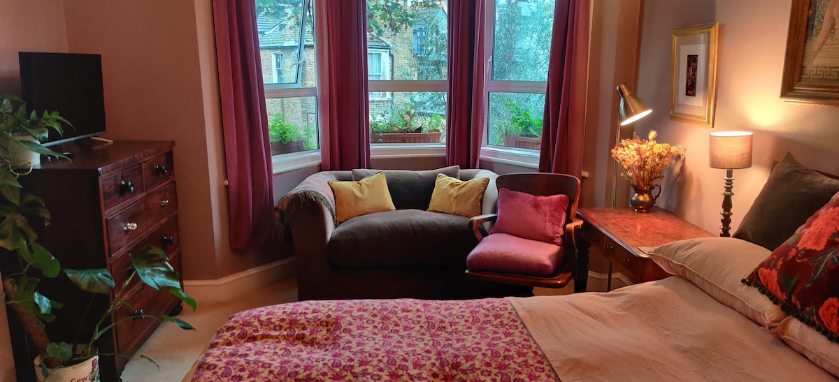 Welcome to 'Room at the Top' in a Victorian house overlooking a park in Zone 2 vibrant South East London. Well connected to Zone I tourist sites, east London business districts, Trinity Laban, Goldsmiths University and World Heritage site Greenwich with it’s beautiful park, museums, market and a university. This lovely room is approached by its own staircase and is very private. Tea and coffee is provided in the room Breakfast is included in the price.