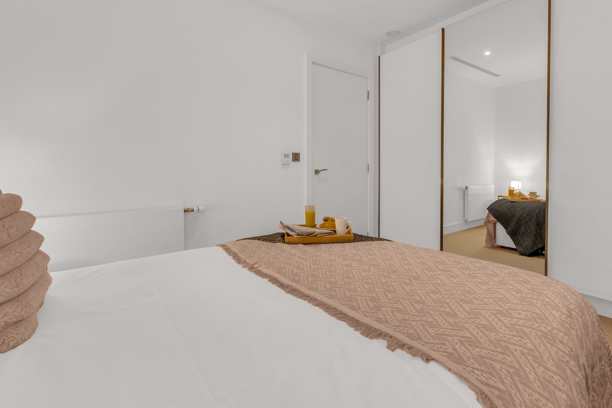 Enjoy skyline views in this elegant riverside apartment overlooking the Thames and O2 Arena. With floor-to-ceiling windows and a bright, open-plan layout, it’s perfect for couples or solo travellers seeking comfort and style. Relax in a beautifully furnished living space, cook in a fully equipped kitchen, and unwind in a peaceful bedroom retreat. Just minutes from London Excel and Canning Town station, you’ll be well-connected and perfectly at ease.
