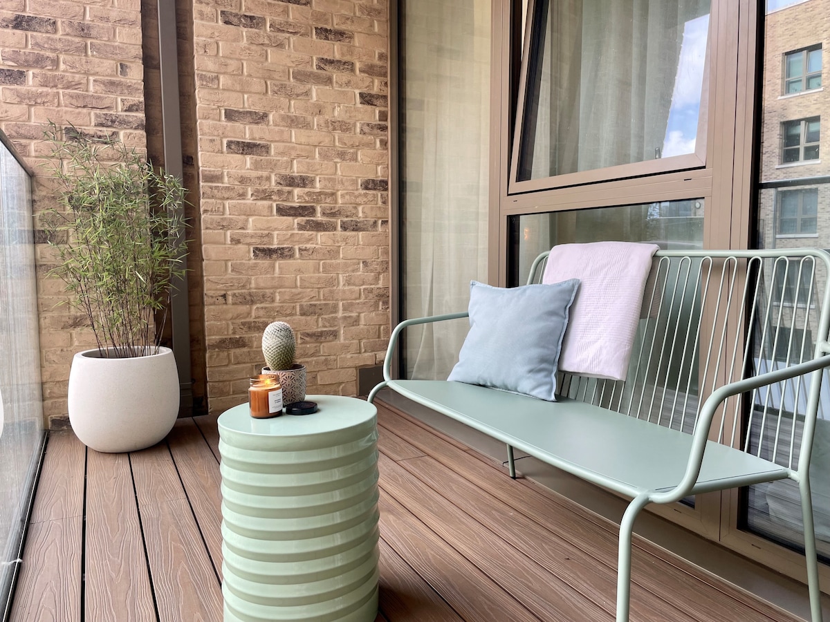 1卧带私人阳台和健身房,靠近金丝雀码头