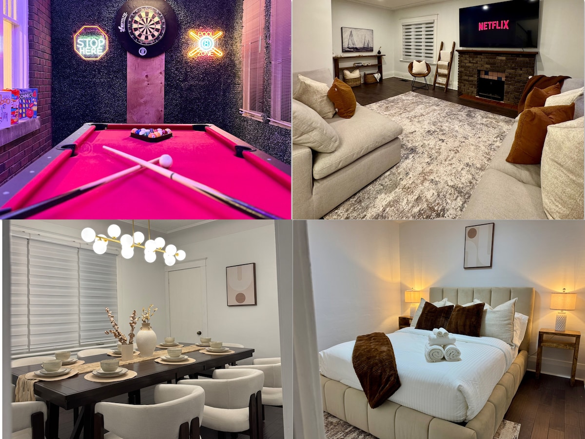 爱彼迎游戏室|市中心豪华房源,带台球桌