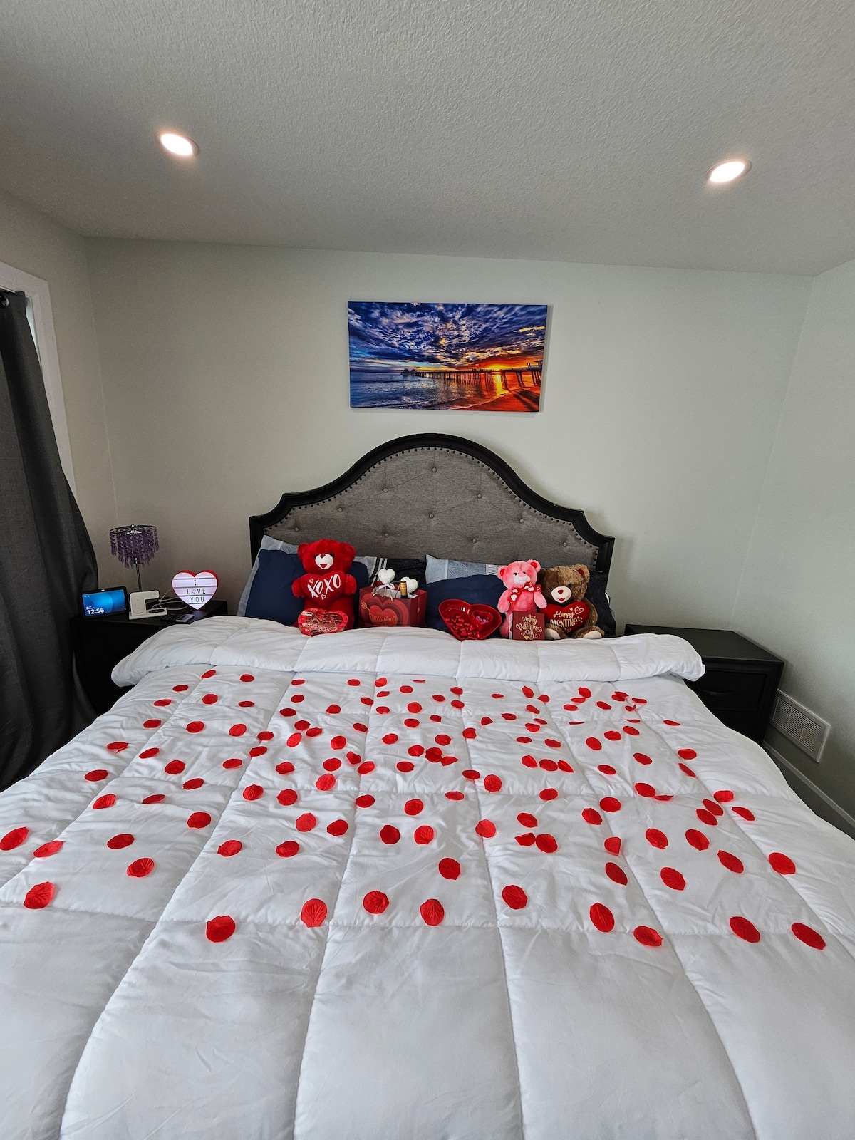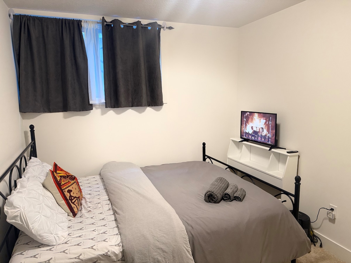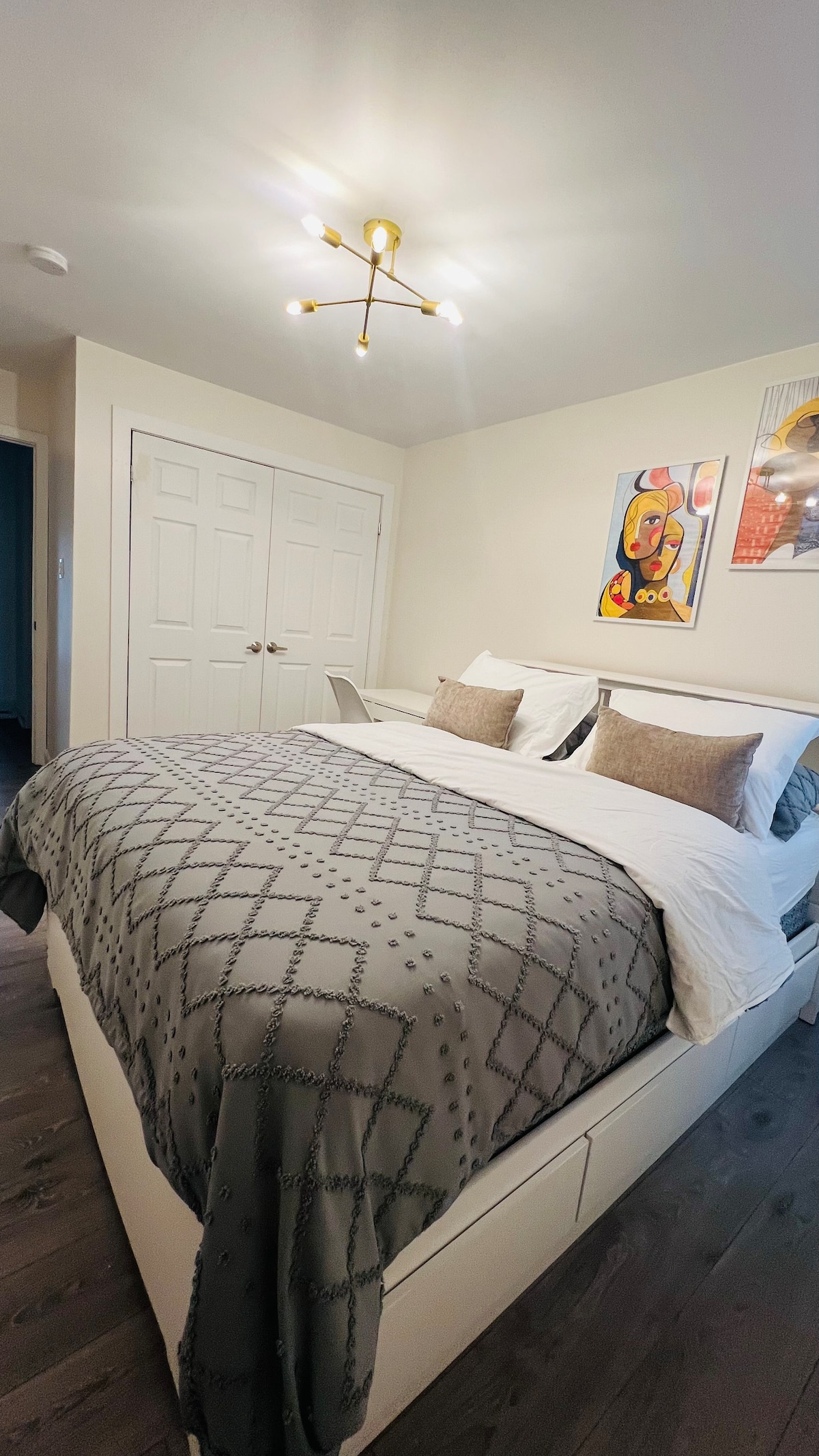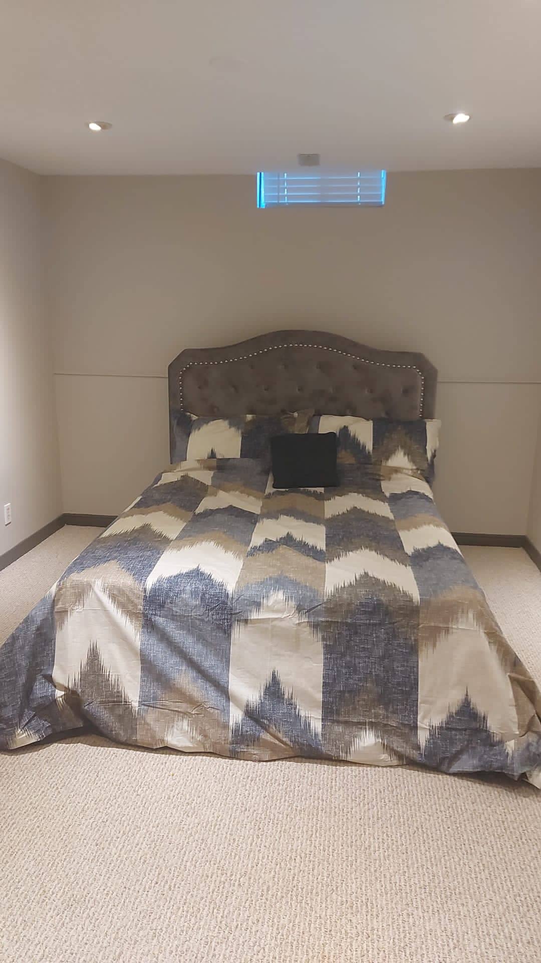 Feel yourself at home in this comfortable private bedroom in our basement. Your room comes with a double-size bed and private bathroom, plus access to a shared living area where we occasionally pass through to reach storage/laundry room. This is a calm, spacious spot to rest after a day of exploring or working. Minutes from 24/7 Circle K, grocery stores, and restaurants 5 minutes drive to Highway 401 24/7 camera monitoring. Make yourself at home—brew your morning coffee, stretch out with a book.
