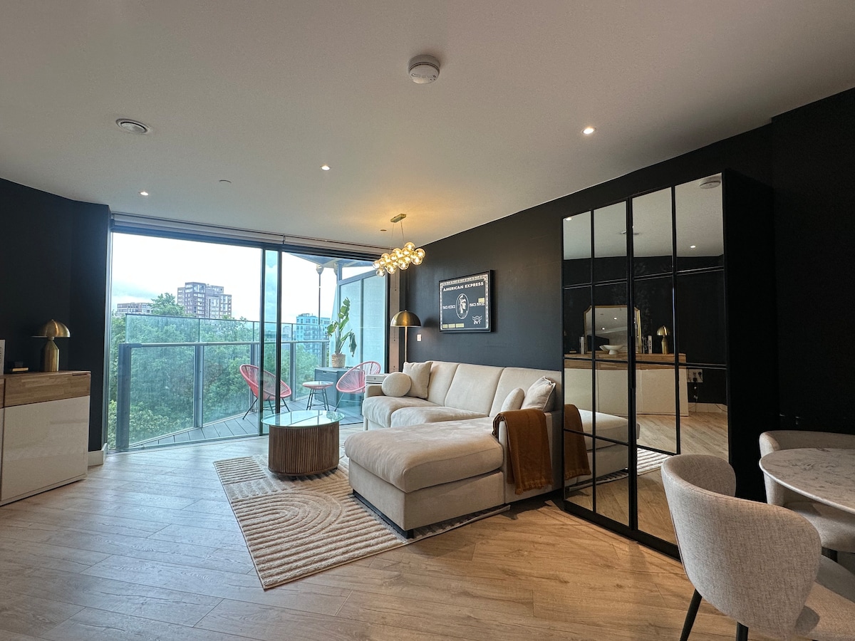 This elegantly finished first-floor 1-bedroom apartment offers the perfect mix of luxury and comfort. The open-plan kitchen/lounge is furnished with designer pieces, while the modern kitchen boasts sleek finishes. The spacious bedroom features a king-size bed and built-in wardrobes. The en-suite bathroom includes both a walk-in shower and a separate bath. Key Features: • High Ceiling • Spacious kitchen/lounge • King-size bed and built-in wardrobes • Modern en-suite with bath & shower