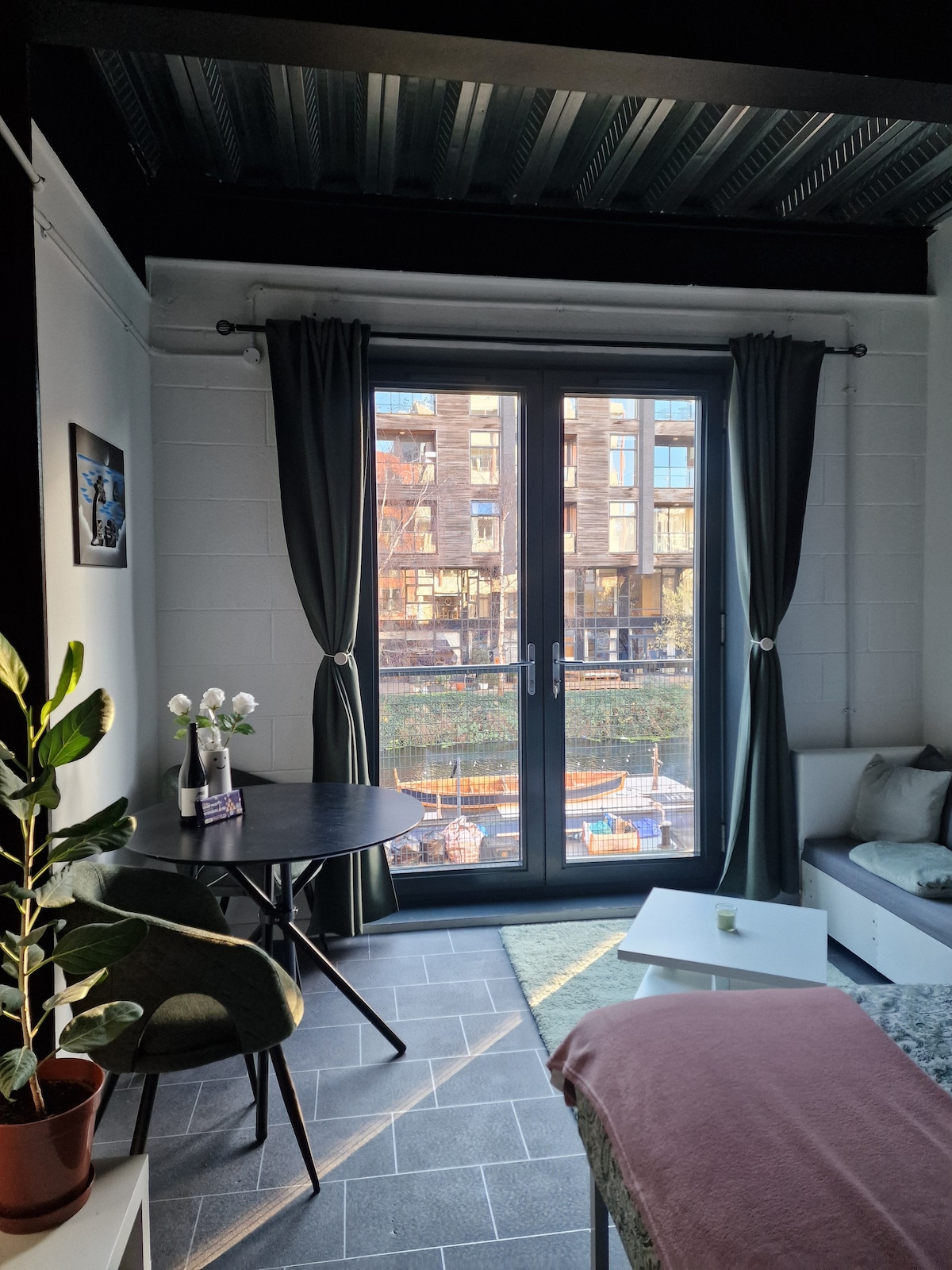 Welcome to my scandi flat in the heart of Hackney Wick! Relax in this creative home with a bright, spacious layout, wooden floors, floor-to-ceiling windows and a private balcony overlooking canal and Olympic Stadium. Near beautiful Victoria and Olympic Parks, close to vibrant street art, cozy cafes and lively bars. Enjoy the Sonos system, unwind in the bath, or immerse yourself in art and books. Peaceful and stylish, it’s the perfect retreat after a day out with modern comforts and amenities.
