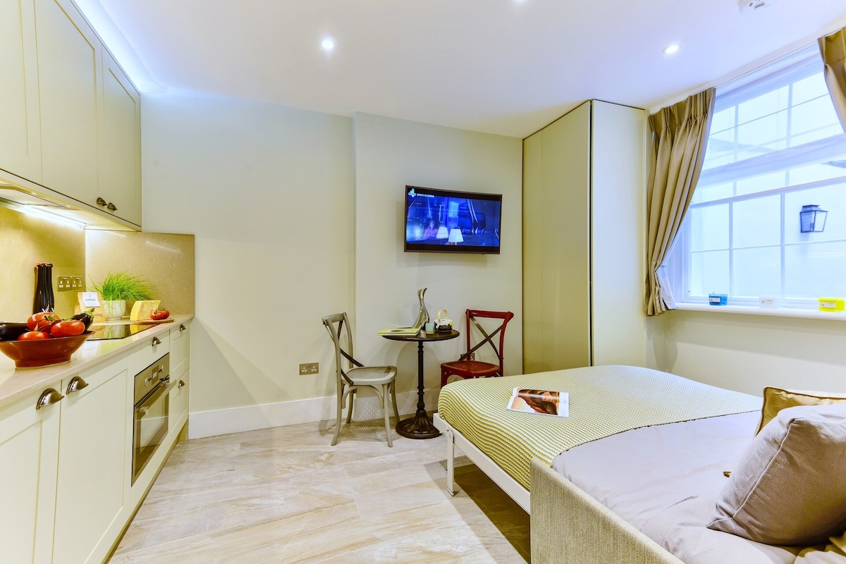 📍Top Central London location, 10 mins walk to everything! This elegant Mayfair studio flat can accommodate up to 3 guests in Mayfair/Piccadilly prime location. Reachable by lift and equipped with AC, the unit boasts a marble shower, double glazing, new mattress, and top-tier Miele appliances. Full-height windows brighten stylish interiors, with Bond Street shops, Hyde Park’s greenery, and Soho’s lively scene just steps away. Oxford Circus and Bond Street station is 5 mins walk.