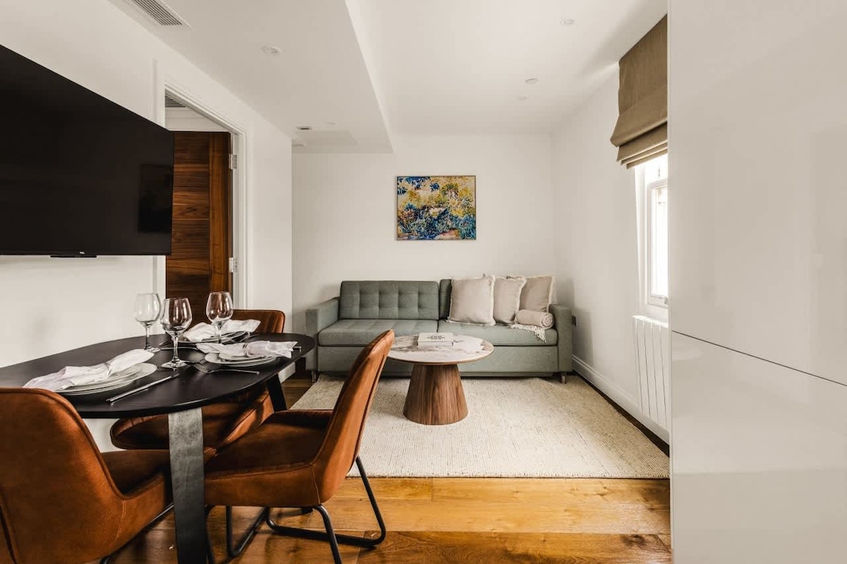 Enjoy historic charm and modern elegance in this newly renovated studio apartment, housed in a building with 250 years of history. Sound proofing ensures a calm stay, while your own full kitchen and private luxury bathroom allow you to unwind and relax. Our location is unbeatable. Tucked away on a quiet street by Leicester Square, you're minutes from top areas like The West End and Soho, with excellent transport links for further trips. Make us your base and spend more time enjoying London.
