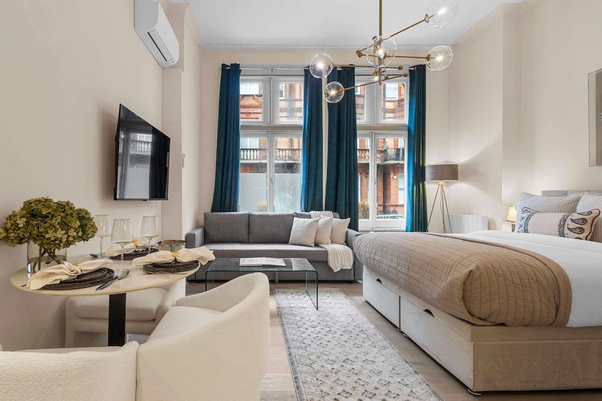 Bright ground-floor flat in Chelsea with a UK king-size bed and a sofa bed. Includes a kitchenette and dining area. Situated in the vibrant Chelsea neighbourhood, just minutes from King’s Road, shops, cafés, and transport. Perfect for couples, friends, or small families visiting London.