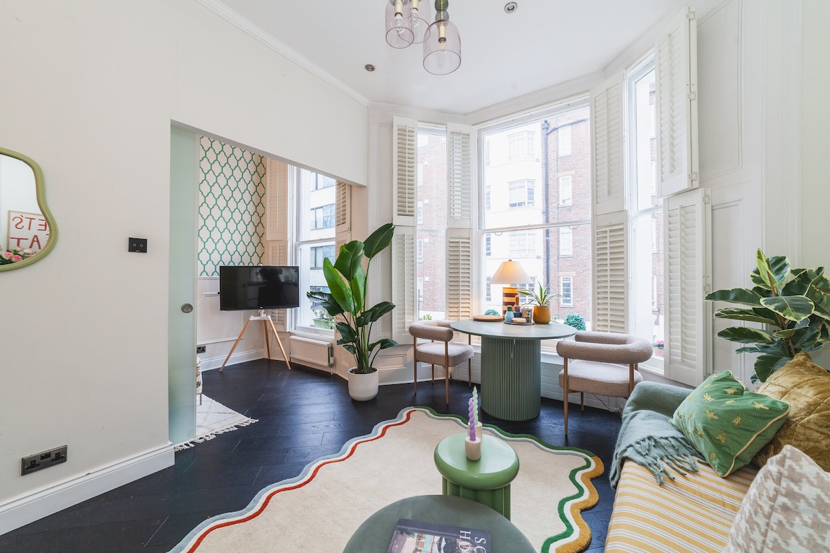 Enjoy an evening glass of wine surrounded by greenery on the private garden terrace of this Italian-inspired apartment. Inside, a generous cream corner sofa makes it easy to slow down, switch off, and settle in. Set in SW10, the apartment offers a quieter residential feel while staying well connected to the rest of London. This is a place with its own sense of style — thoughtfully put together, a little unexpected, and refreshingly different from the usual stay.