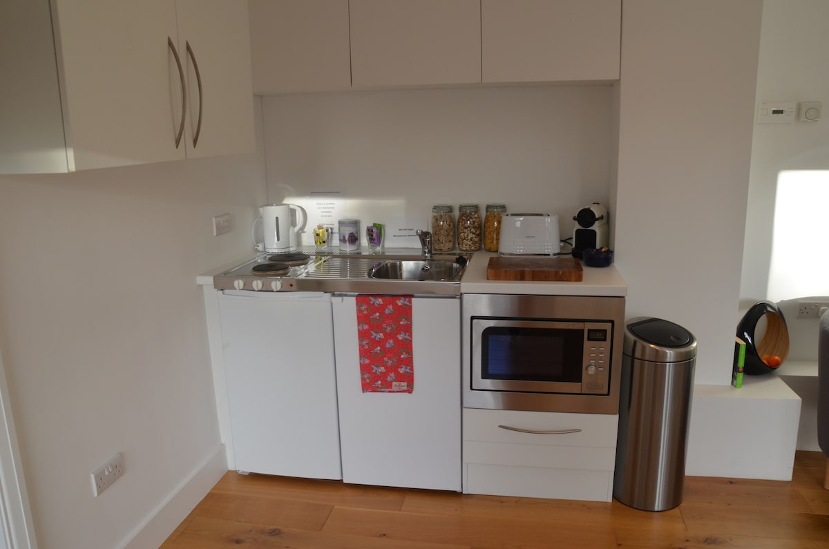 Bright and airy self contained studio with kitchenette, set to the rear of our family home. We are only a very short walk (5 mins) from the main entrance of the All England Club (which can be seen from the property), the Wimbledon Club, Wimbledon Park and Wimbledon Common. The studio overlooks our mature garden & patio which guests are welcome to use and enjoy during their stay.