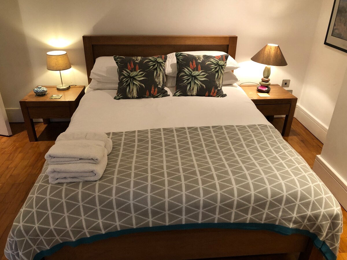 A large, comfortable guest suite, with its own private entrance, in a Georgian townhouse. Set in a great Islington location, with excellent transport links, green spaces, and the delights of Upper Street only 5 mins walk away. The space has a boutique-hotel feel with a super king bed, underfloor heating, contemporary furnishings, luxury wet room and a separate loo. We also provide a mini fridge, simple continental breakfast, and tea and coffee facilities. (Note that there is no kitchen.)