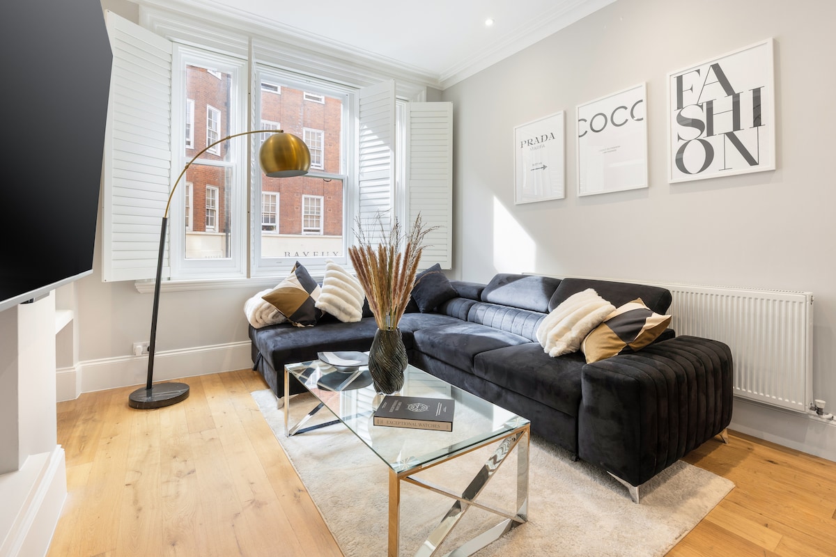 Enjoy a stylish experience at this centrally-located place.Nestled in the vibrant heart of Oxford Circus, this stylish two-bedroom, two-bathroom apartment. The apartment is located in the first floor. Step inside this fully renovated space, where every detail has been thoughtfully chosen to create a tranquil retreat from the bustling city. The apartment is located on a quiet street, yet it's an unbelievable one-minute walk from the world-famous Oxford Street—offering you the best of both worlds.