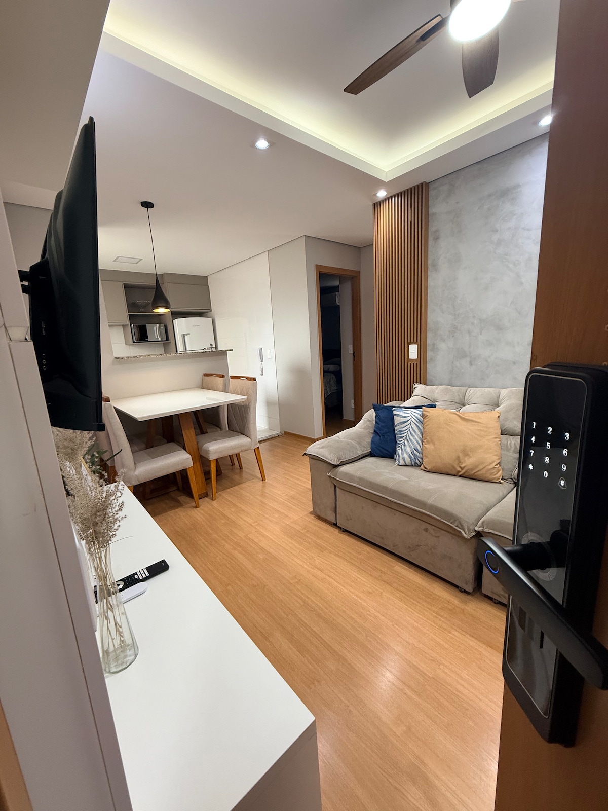 Apartamento novo, moderno, de alto padrão, com acabamento premium e design elegante, oferece conforto absoluto em cada detalhe. 📍Jardim Pinheiros, fácil acesso à Gleba, centro, UEL e Shopping Catuaí • 13º andar • 2 quartos (1 suíte) com ar-condicionado e enxoval completo • Sala de estar/jantar com Smart TV 55" e climatizada • Cozinha totalmente equipada + lava e seca • Piscina • Playground • Churrasqueira a carvão no apartamento • Garagem demarcada e fechada • Portaria 24h e self check-in