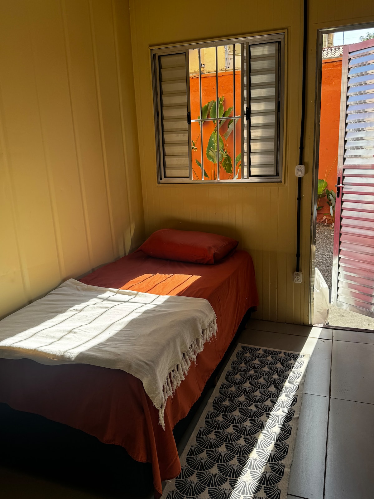 O espaço é um casa totalmente privativa para até 4 pessoas em um sobrado. Quarto suíte com cama box de casal, closet e ventilador de teto. Sala de estar com TV, sofá, sofá-cama, poltrona, escrivaninha e cadeira. Cozinha completa com mesa de jantar e utensílios. Possui jogo de cama, mesa e banho. Lavanderia com máquina de lavar, tanque e varal. Casa arejada e fresca. Vaga para 1 veículo em garagem externa. Localização ótima e tranquila, próximo à Av Saul Elkind, UBS, Pizzaria, lanchonetes, etc.