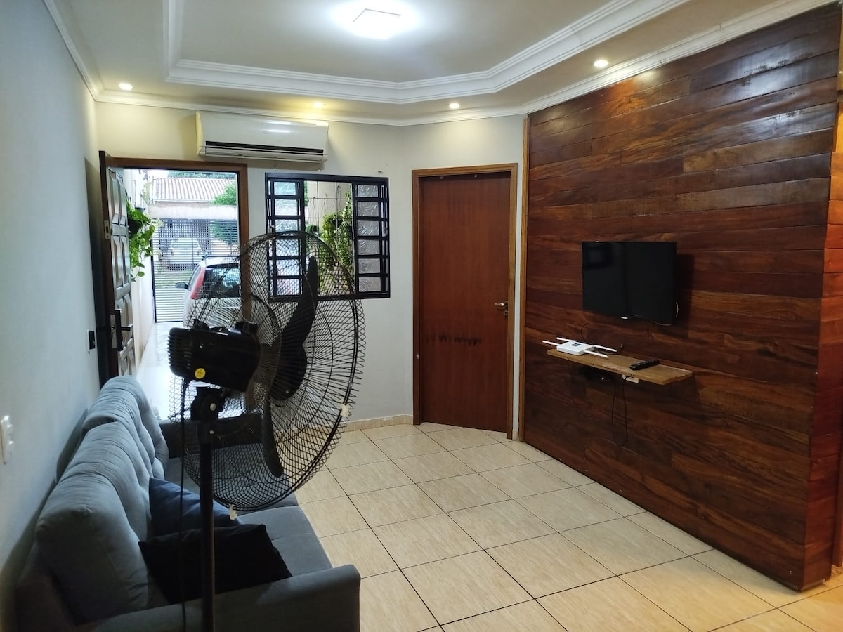 Casa Aconchegante próximo ao Shopping Catuai Norte em Londrina , dispõe de 3 quartos, sendo 1 suíte com Cama King, quarto 2 com duas camas box solteiro, e o terceiro quarto com Cama Queen. Sala Ampla com sofá extensor transforma cama viúva, e 02 colchoes extra, os ambientes são integrados TV, Jantar e a Cozinha Americana com maior interação entre hospedes, temos tbem área de serviço. E Churrasqueira - lugar daquele churrasquinho...Garagem para dois carros, cabendo 2 camionetes.