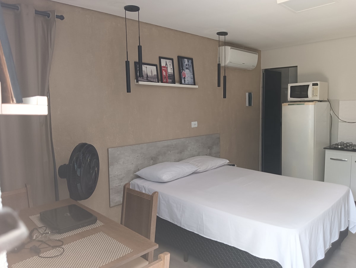 Kitnet em ótima localização! 400 metros do Hosp. do Câncer, Prefeitura e do Centro Cívico de Londrina. Rodoviária a 3,5 km e Aeroporto a 3 km. Perto de supermercado, farmácias, padarias e restaurantes. Bairro residencial muito agradável. O espaço possui ar condicionado, cama queen, garagem privativa (um carro), cozinha e banheiro. Trata-se de um espaço inteiro e individual, com todo conforto e privacidade necessária para sua hospedagem. Aceitamos animais de estimação sem custo adicional.