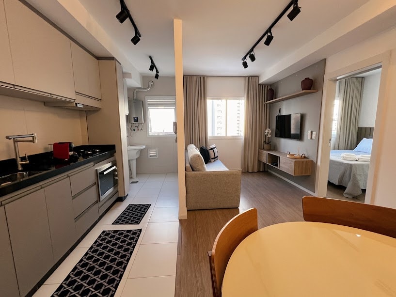 📍 Gleba Palhano | 50 m² | 100 m do Aurora Shopping Apartamento novo, em andar alto, com padrão premium, luxo e sofisticação em cada detalhe. Totalmente preparado para hóspedes, com estrutura completa e itens de primeira linha, pensado para oferecer conforto, praticidade e uma experiência diferenciada na região mais valorizada de Londrina. ✨ 🏢 13º andar | 🛏️ 1 quarto c/ ar | 🛋️ sala c/ TV e ar | 🍳 cozinha completa | 🧺 lava e seca | 🚗 vaga | 🌅 sacada | 🏊 condomínio com lazer completo.