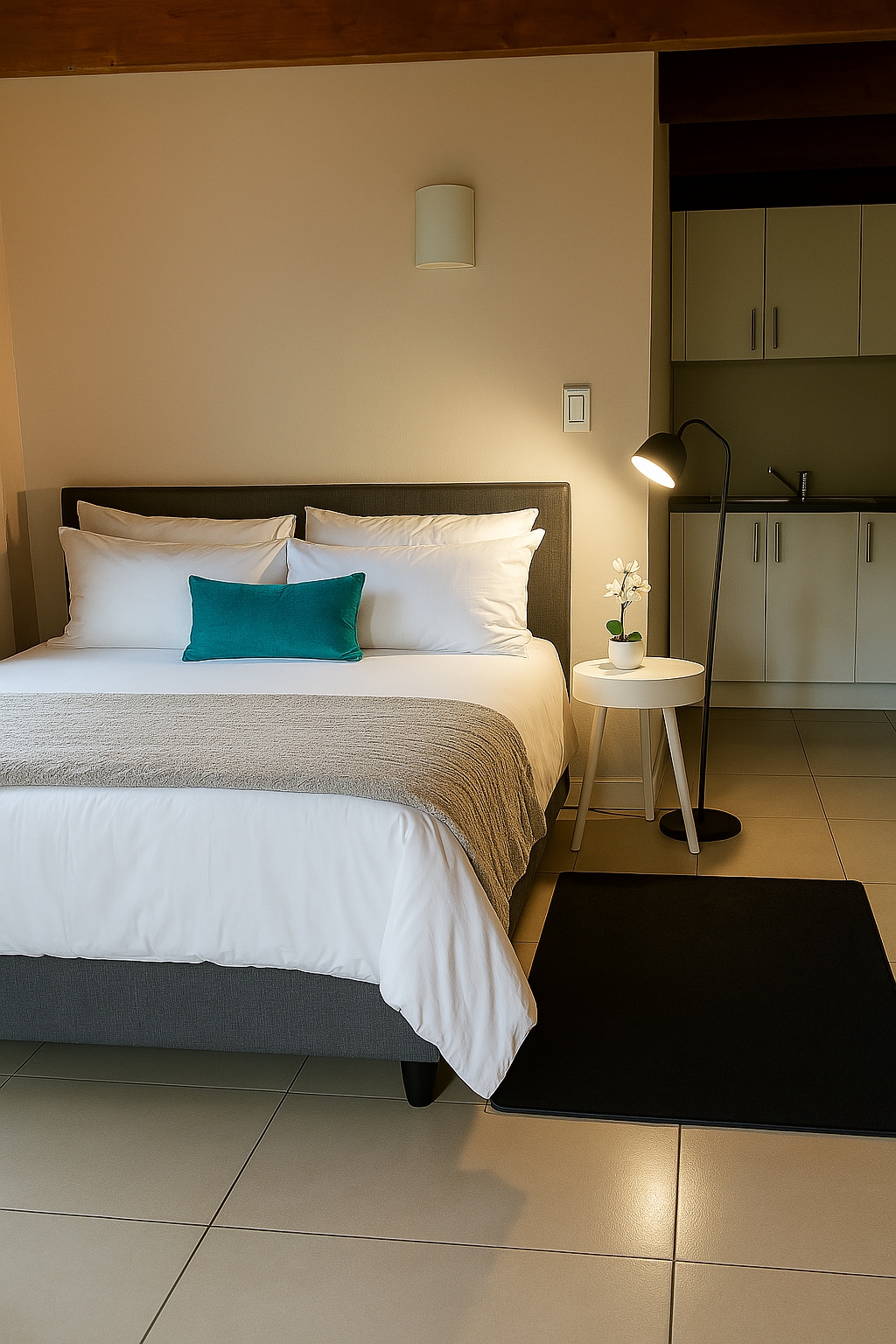 Tucked away in the Kyalami area, indulge in the luxury and elegance. 5 bedrooms, with each room individually appointed. Each room is equipped with en-suite bathroom offering fresh white linens. The home features a spacious common area with a pool, bar, expansive lounge, and a separate dining area. Complimentary daily housekeeping is provided which includes a morning bedroom turn-up, thorough clean of the kitchen, lounges and outdoor dining & lounging areas with the exception of Sundays.