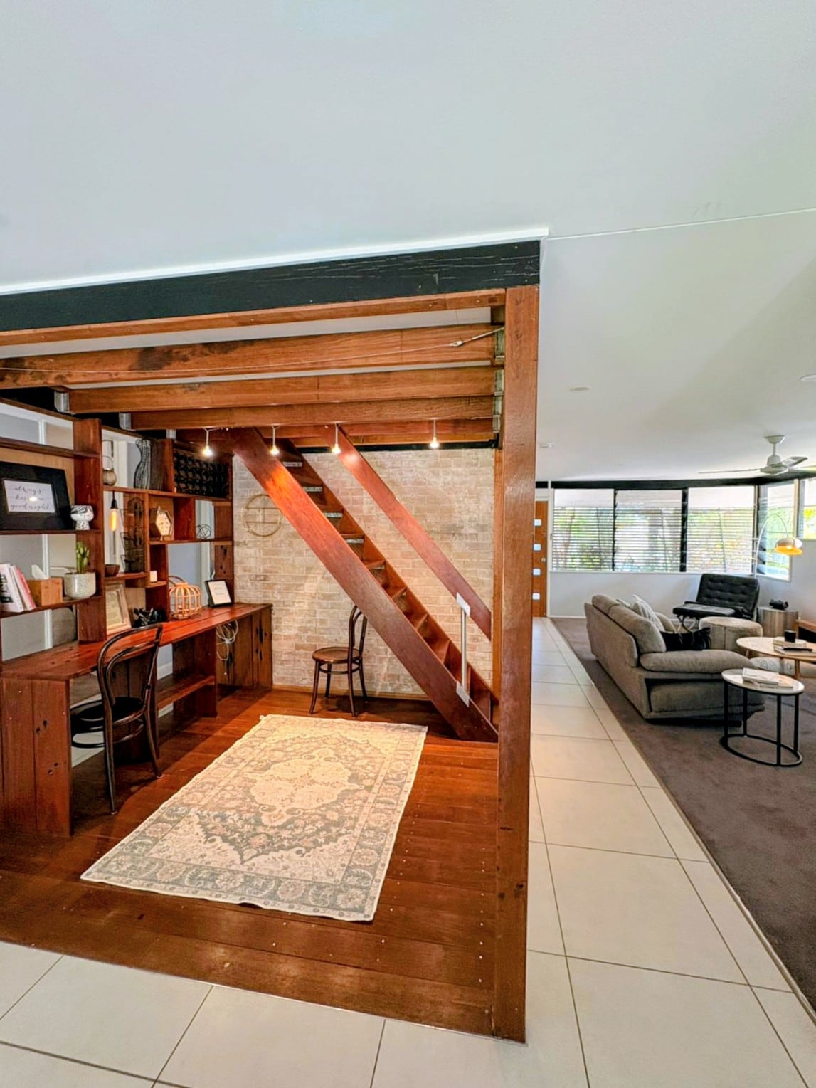 This beautiful eco tiny house is a modern version of the traditional Australian shed. It is built entirely by hand, complete with restored furniture & bamboo floors. Surrounded by greenery, it is split-level, with a mezzanine bedroom, small modern kitchen & bathroom. Its private but not totally secluded as you will sometimes see one of us walk past. NB: Brisbane can be hot & humid from November to March. There is a fan but no air conditioning, so this may be a consideration for some guests.