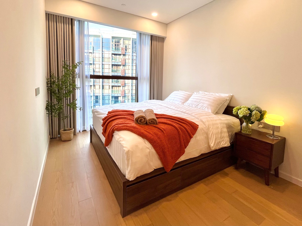 This 80m² 5🌟 luxury apartment is located in District 1, overlooking the river and the whole city, a prime location near Bui Vien, Ben Thanh Market and Nguyen Hue Walking Street within a 2km radius. The apartment has 2 bedrooms (3 beds, including 2 King beds 1m8x2m and 1 Queen bed 1m4x2m), 2 bathrooms and full facilities such as saltwater infinity pool, gym, dry and wet sauna. Enjoy the cozy feeling of being at home in this modern building.